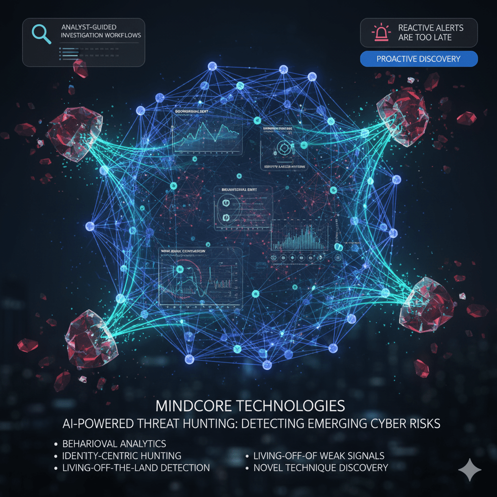 At Mindcore Technologies, we approach threat hunting as a signal discovery problem, not an alert review exercise. Machine learning changes threat hunting because it reveals what security tools were never designed to show: weak signals, subtle drift, and early indicators of emerging attacks.