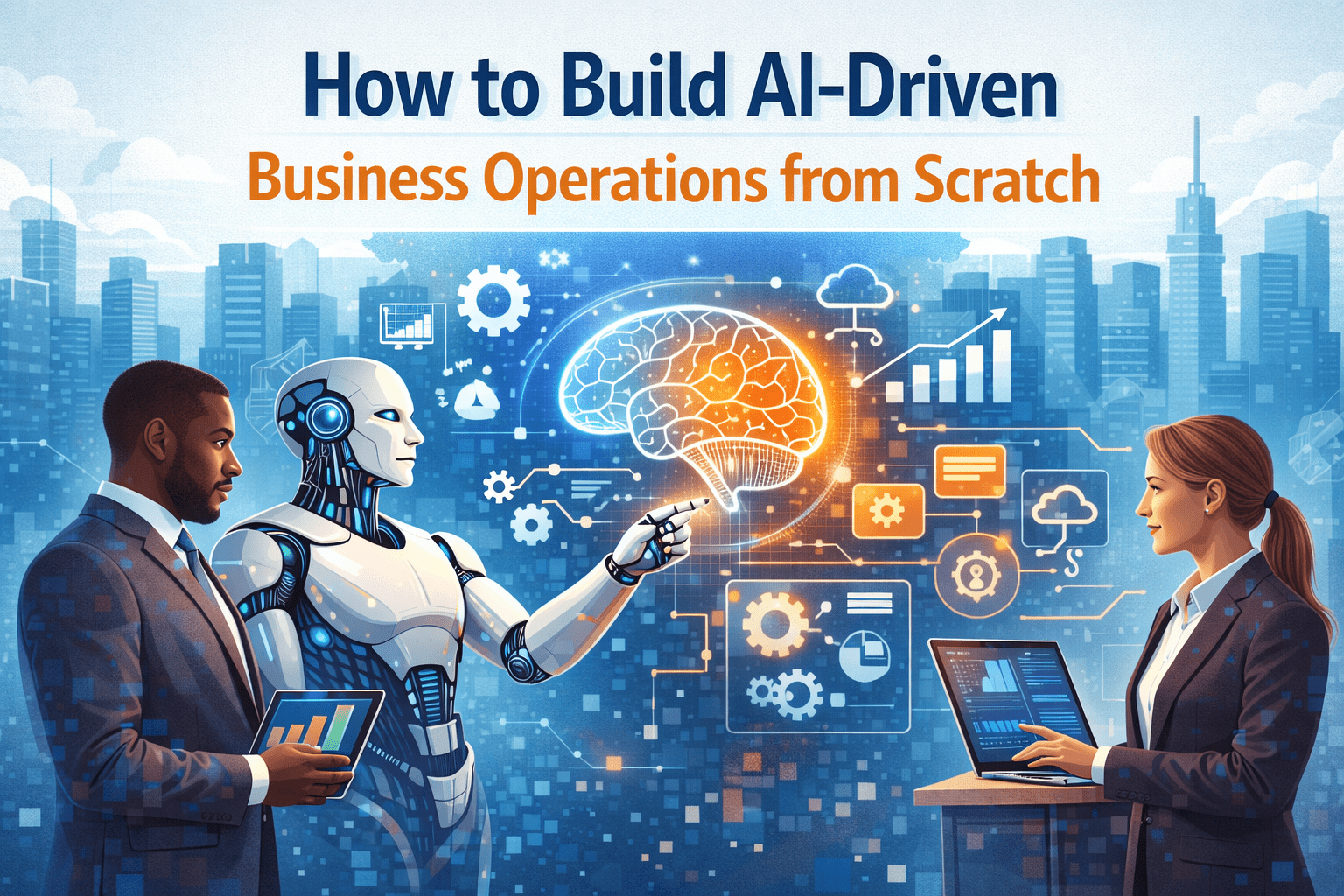 Building AI-driven business operations from scratch requires mapping core workflows, redesigning inefficiencies before automation, architecting secure integration layers, deploying custom AI agents strategically, establishing executive governance, and continuously measuring performance improvements. When organizations construct AI infrastructure intentionally rather than layering automation onto fragmented systems, they create scalable operational foundations that improve efficiency, visibility, and long-term competitive strength.