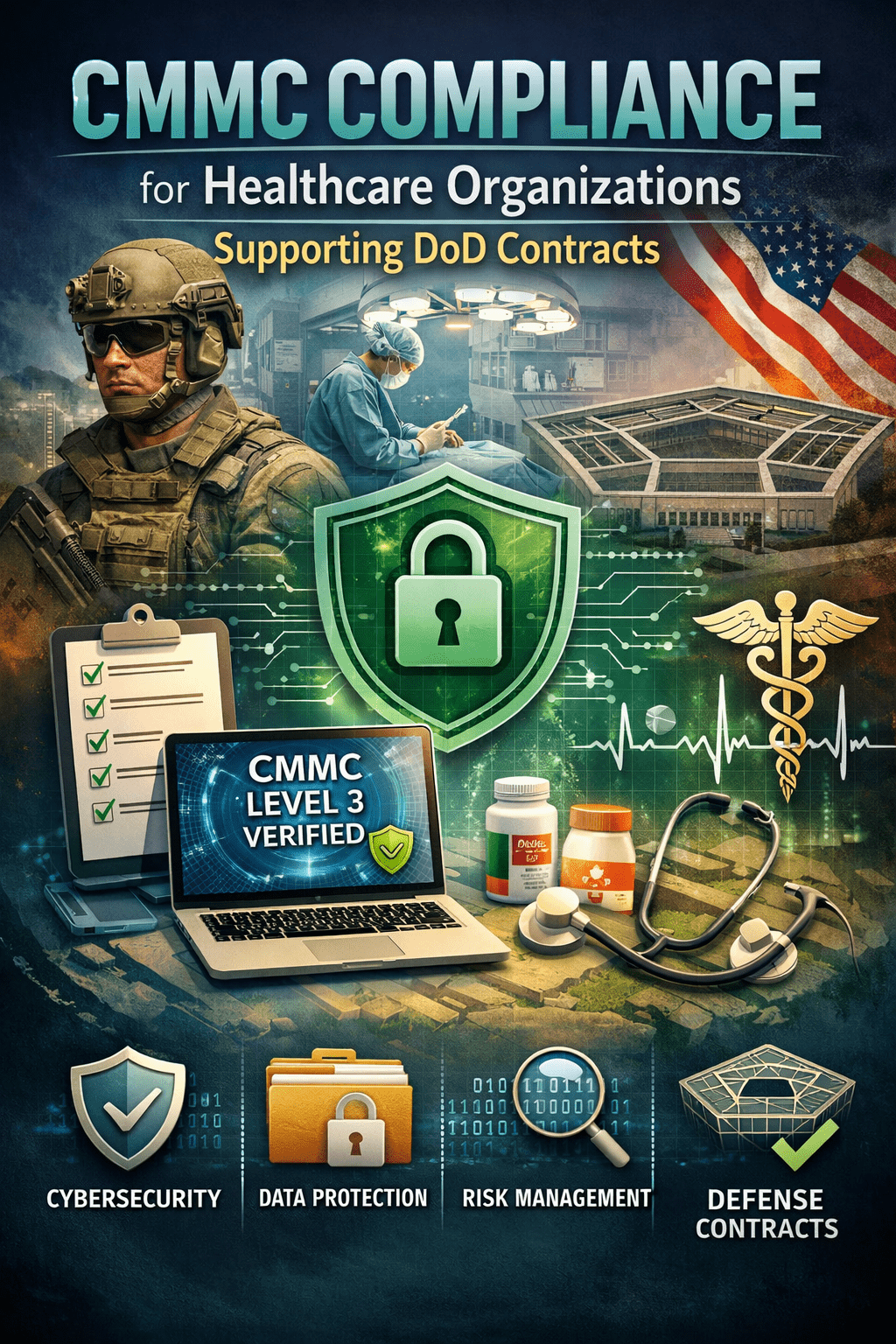 Healthcare organizations that support DoD contracts — military treatment facility contractors, defense health agency vendors, medical research organizations, clinical service providers — carry a compliance burden that most of the defense industrial base does not: HIPAA and CMMC simultaneously.