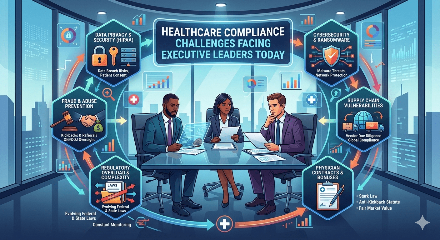 Healthcare compliance is no longer confined to IT departments. Regulatory failures now reach the executive level. Chief Executive Officers, Boards of Directors, Chief Information Officers, and Chief Information Security Officers are increasingly held accountable when systemic weaknesses lead to breaches or audit failures.