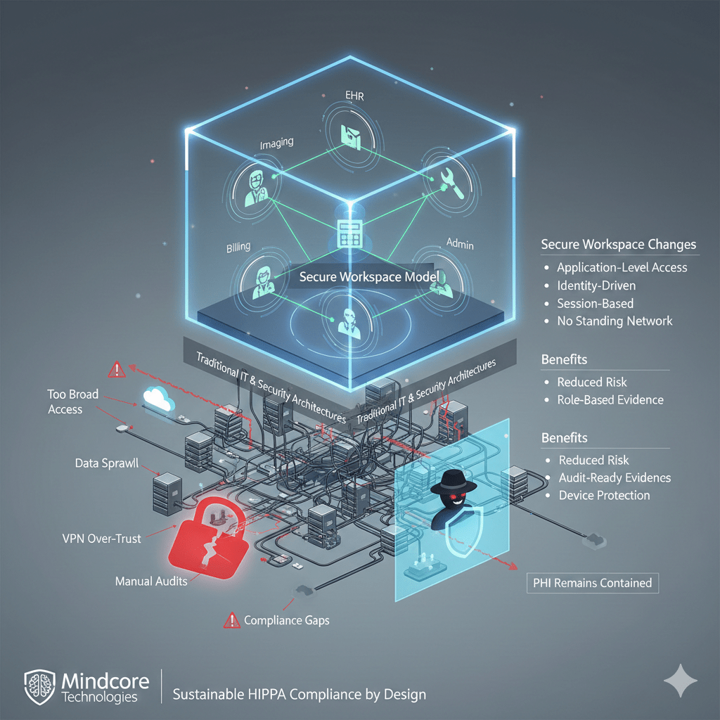 At Mindcore Technologies, HIPAA-related findings, near misses, and breach investigations almost always trace back to the same issue: access is too broad, data is too reachable, and evidence is too difficult to produce under pressure. The secure workspace model exists to address these failures at the architectural level.