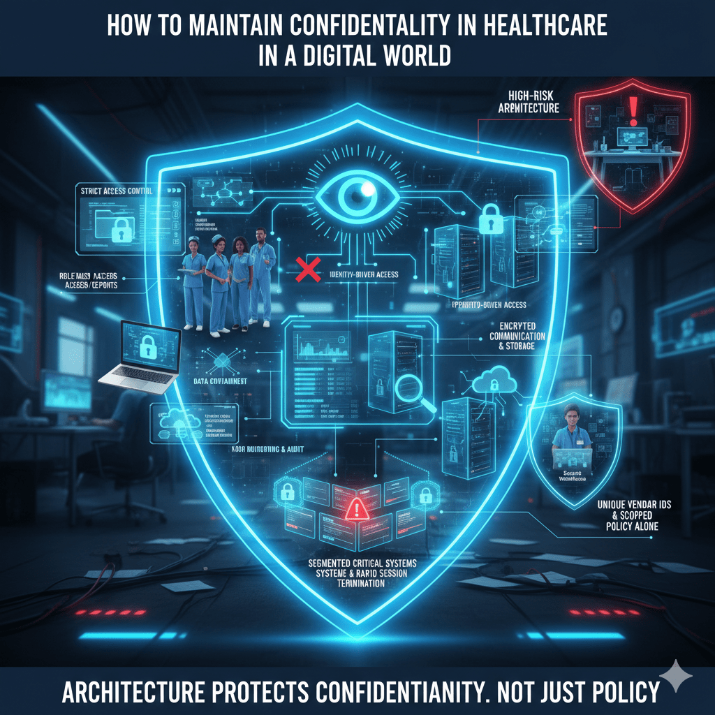 Maintaining confidentiality in healthcare in a digital world requires disciplined identity enforcement, controlled access, data containment, continuous monitoring, and architectural design that assumes compromise is possible.