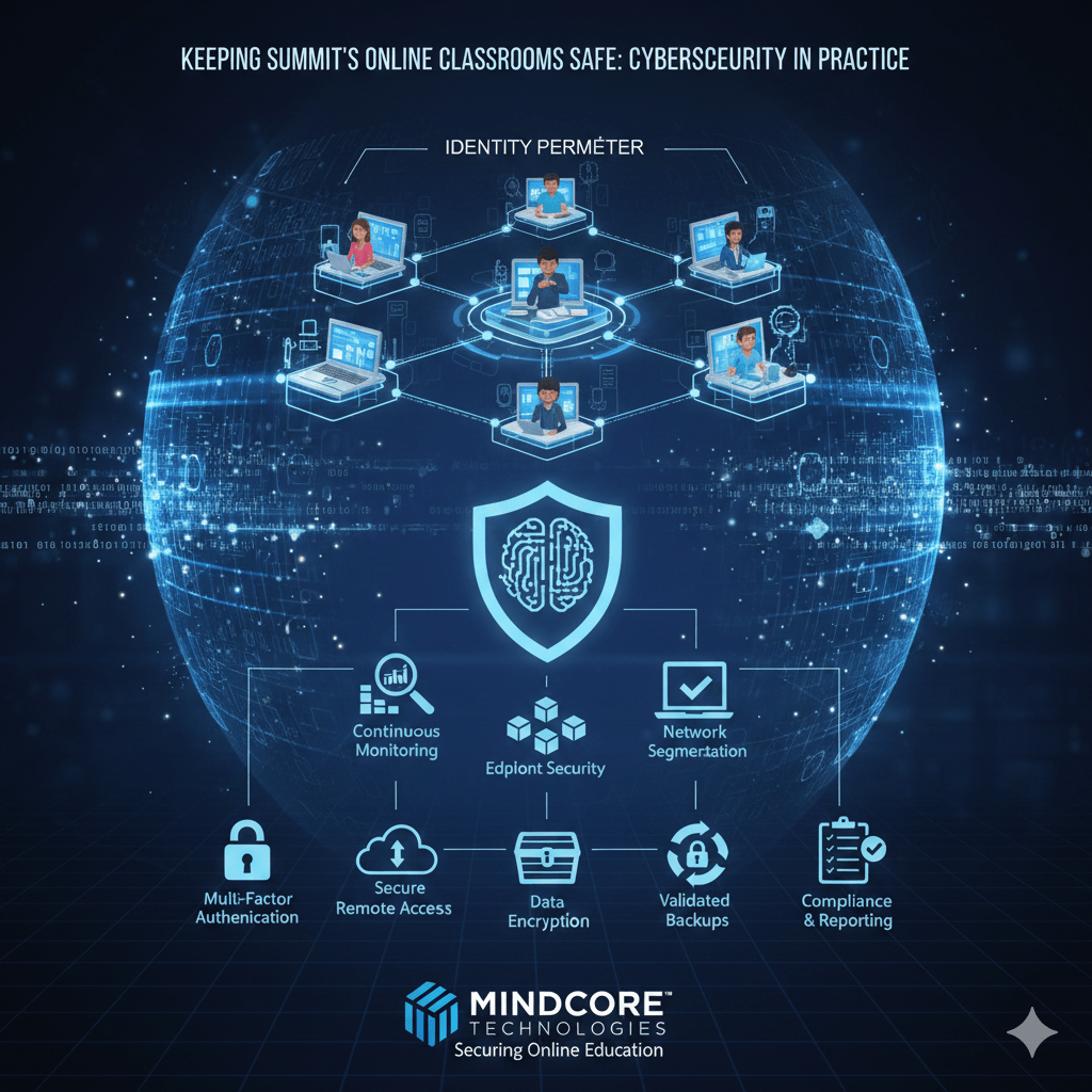 Mindcore Technologies delivers enterprise-grade defenses for online learning environments, tailored to the risks of education workloads: