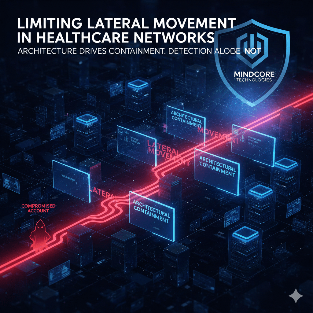 At Mindcore Technologies, healthcare incident reviews consistently show that lateral movement, not initial compromise, is what drives ransomware impact, operational downtime, and HIPAA exposure.