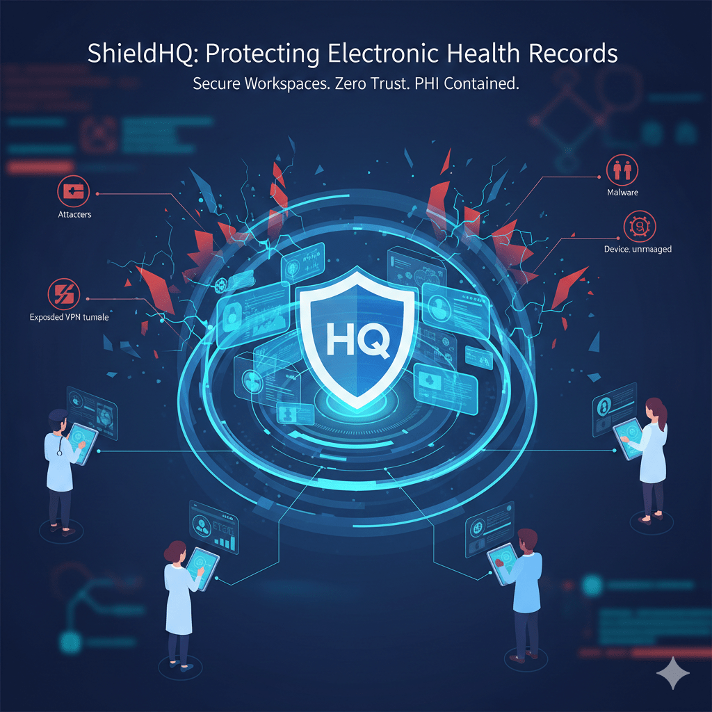 ShieldHQ secures EHR access through a secure workspace model that changes the architecture, not just the controls.