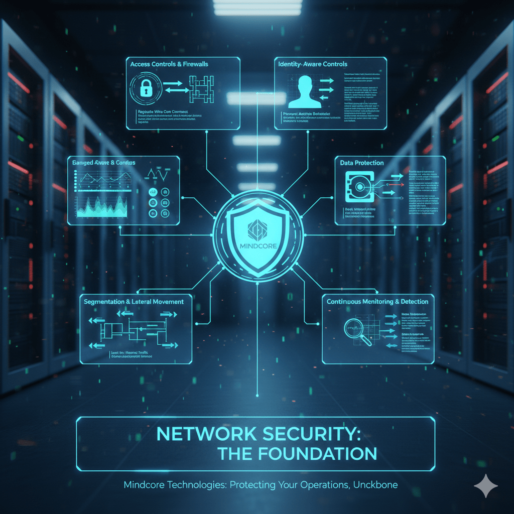 At Mindcore Technologies, we define network security as the foundation that everything else depends on. Identity, cloud security, endpoint protection, and even AI-driven defenses fail when the underlying network is poorly secured.
