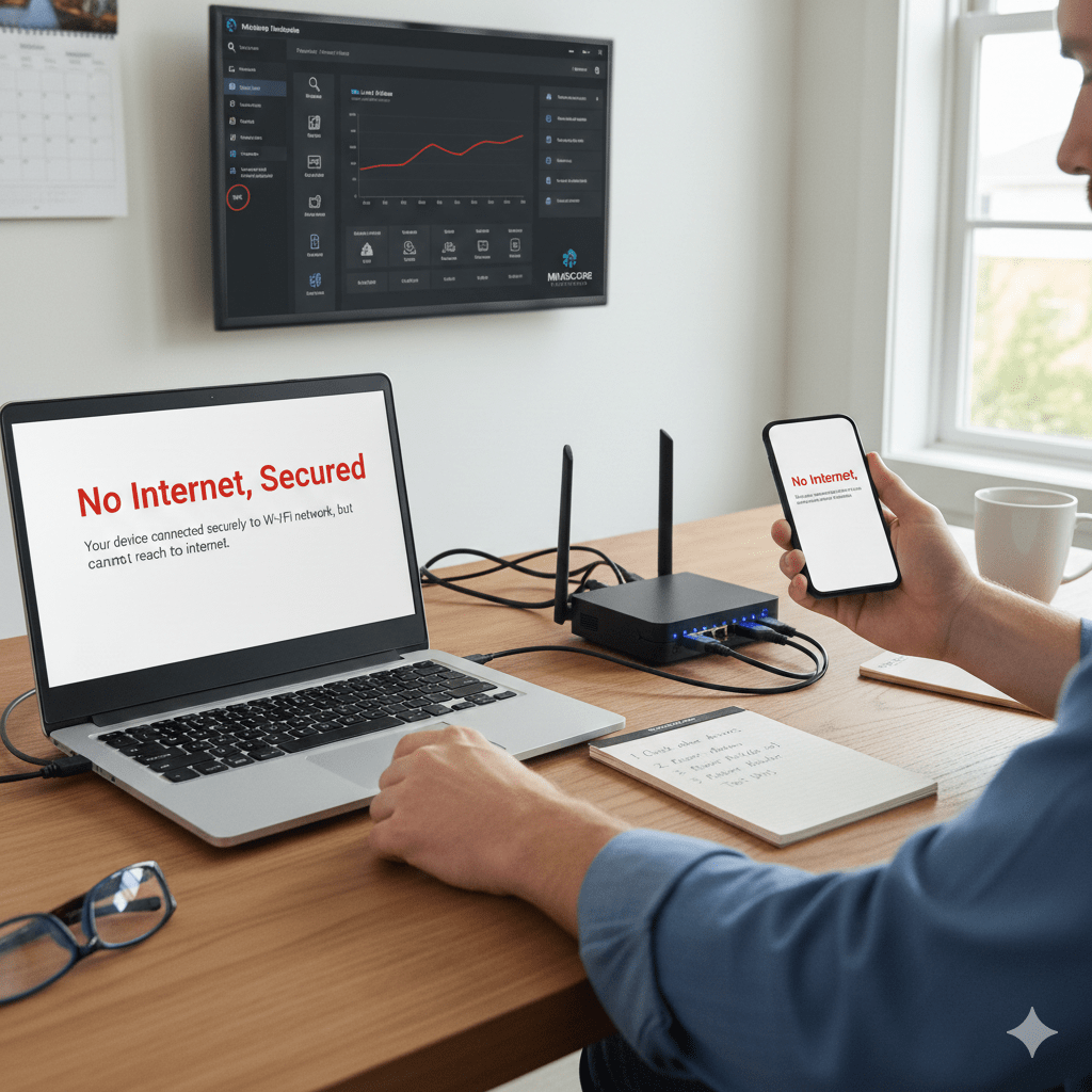 “No Internet, Secured” means Wi-Fi is fine; the path beyond it is not. Fixing it is about checking the upstream link, DNS, and policy enforcement, in that order. When this message appears often, it’s a visibility or resilience problem—not a password problem.