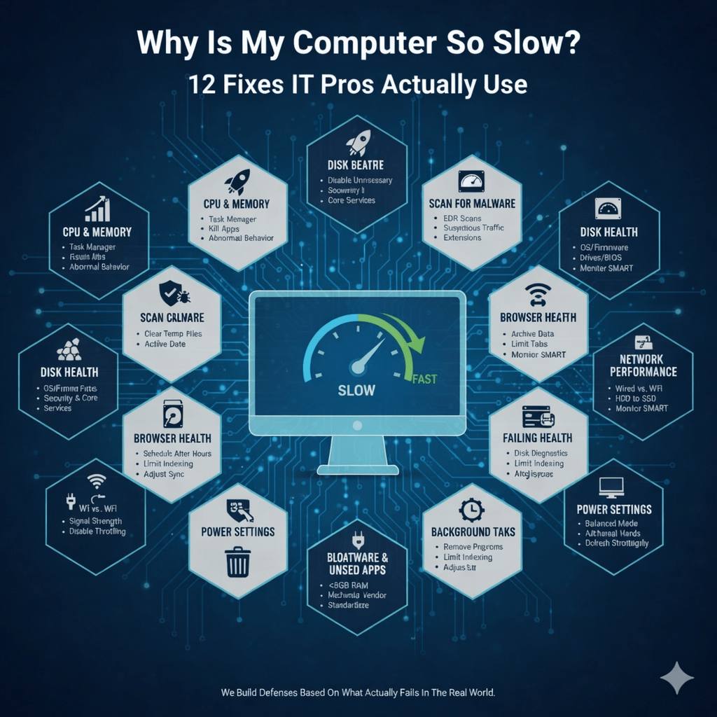 When a computer slows down, most people assume it’s “just old.” That assumption costs businesses hours of lost productivity every week. In reality, most slow computers aren’t dying — they’re misconfigured, overloaded, infected, or poorly maintained.